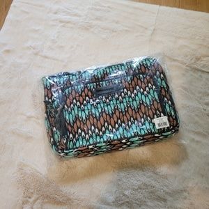 Brand new. Comes from smoke free home. Exterior features a slip pocket with magnetic closure. Zip compartment features one bill slip, three card slips and an ID window. Main Compartment has an inner zip pocket. Zip Closure and adjustable strap. 9 X 6.5 X 1.25 inches