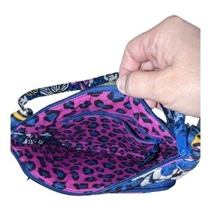 THE LITTLE HIPSTER HAS AN ADJUSTABLE SHOULDER STRAP WITH AN EXTERIOR FRONT ZIP AROUND COMPARTMENT WHICH HAS THREE CARD SLOTS AND AN ID WINDOW.