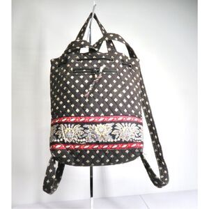 Vera Bradley MIMI Backpack Floral Black Red Retired Pattern Cotton Drawstring