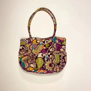 Vera Bradley Medium Tote Bag in Retired Plum Crazy Pattern with Side Pockets