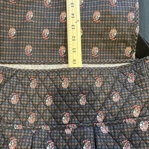 Vera Bradley Houndstooth and Paisley pattern on 100% cotton exterior material. The push lock closure ensures the security of your belongings while the adjustable strap with a 25" drop allows for comfortable wear. The bag dimensions are 14" x 12" x 4", making it a large-sized bag that can fit all your essentials. The bag is quilted with a cotton lining material that makes it easy to clean and maintain.