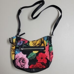 Vibrant floral crossbody bag with a mix of colors. Perfect for adding a pop of color to any outfit