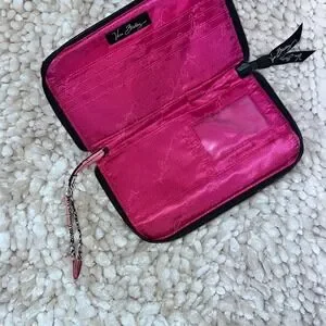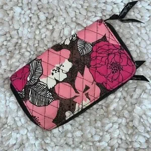 Vera Bradley Mocha Rouge Floral Quilted Double ID Wallet Wristlet