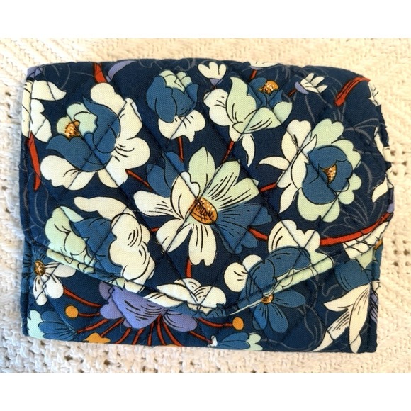 Vera Bradley Modern Floral Blue Small Trifold Wallet Daisy
