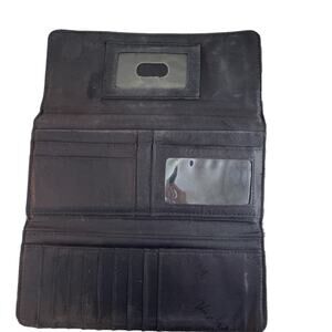 Interior: 1 ID card slot, 1 photo window. 3 bill pockets, and 11 card slots. Exterior: 1 zip pocket.