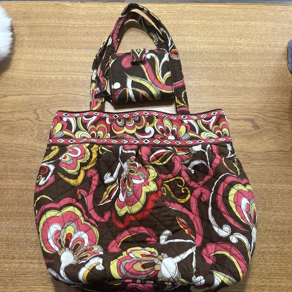 Vera Bradley Morgan Puccini Tote Bag Purse Hobo Brown Paisley Floral W / Wallet