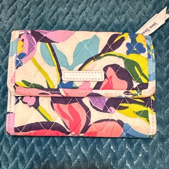 Vera Bradley Multicolor Floral Quilted Wallet in Pink, Blue & Yellow