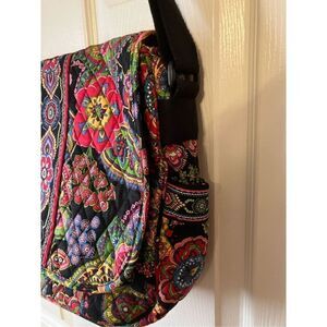 Stylish Vera Bradley laptop bag. Features vibrant floral patterns. Adjustable shoulder strap. Perfect for on-the-go.