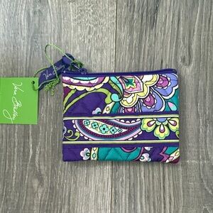 Vibrant paisley design with purple, green, and blue hues. Includes matching coin pouch.