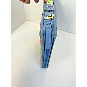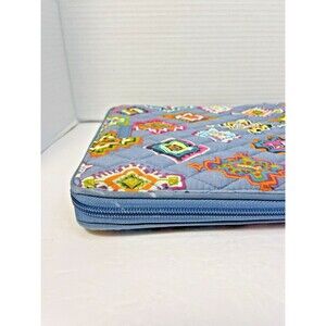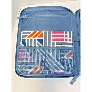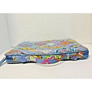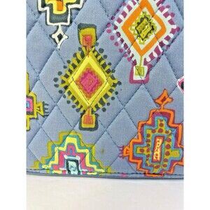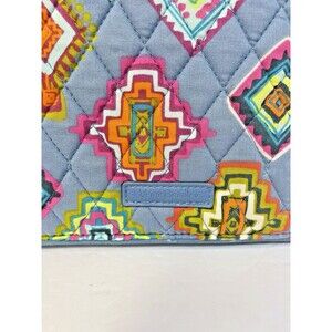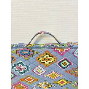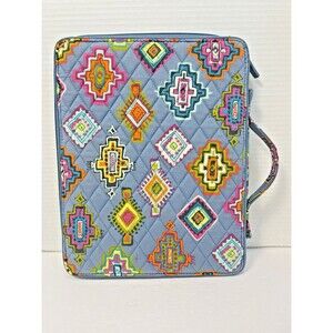 Quilted tablet case with vibrant geometric patterns. Features a convenient handle. Stylish and protective.