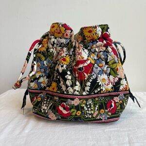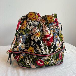 Vera Bradley Multicolored Poppy Fields Alice Dark Floral Drawstring Bucket Handb