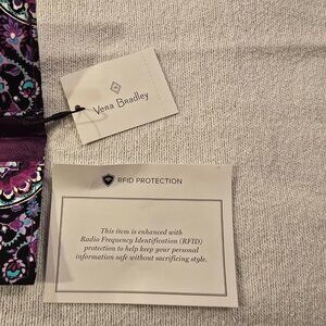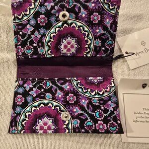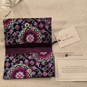 Vera Bradley NEW Card Case Lilac Medallion Purple Floral Retired Pattern RFID Secure Collectible Handy Wallet Gift Idea Quilted Cotton. Radio Frequency Identification Protection Credit Card. Snap Closure. NWT New with Tags