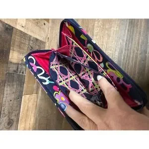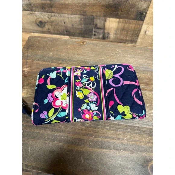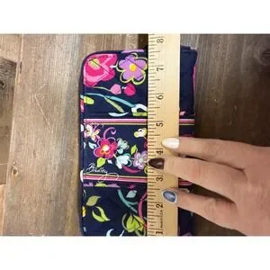 Vera Bradley Navy Blue Floral Quilted Cotton Zip Around Wallet Organizer