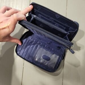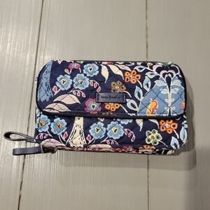 Vera Bradley Navy Blue Floral Quilted Wallet Double Zipper White Pink