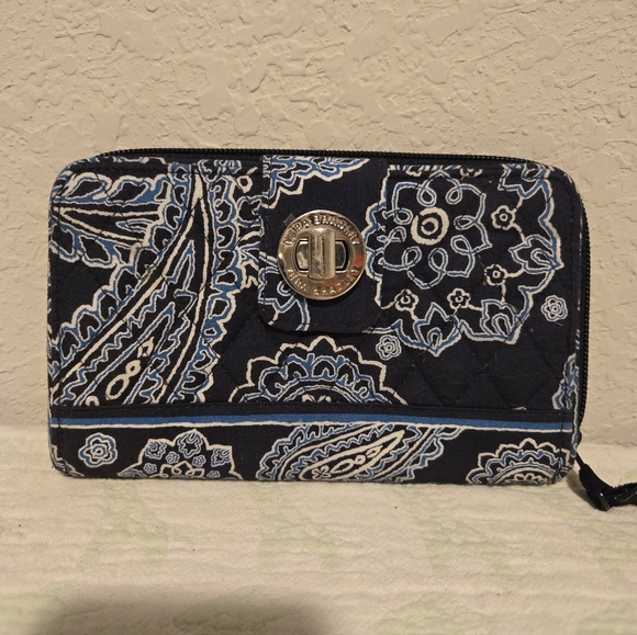 Vera Bradley Navy Blue Paisley Zip Around Wallet.