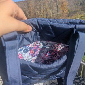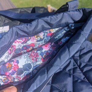 Vera Bradley-Solid Navy Blue Purse with Diamond Stitching on the outside. Inside lined with floral pattern. Adjustable shoulder strap. Never used with tags.