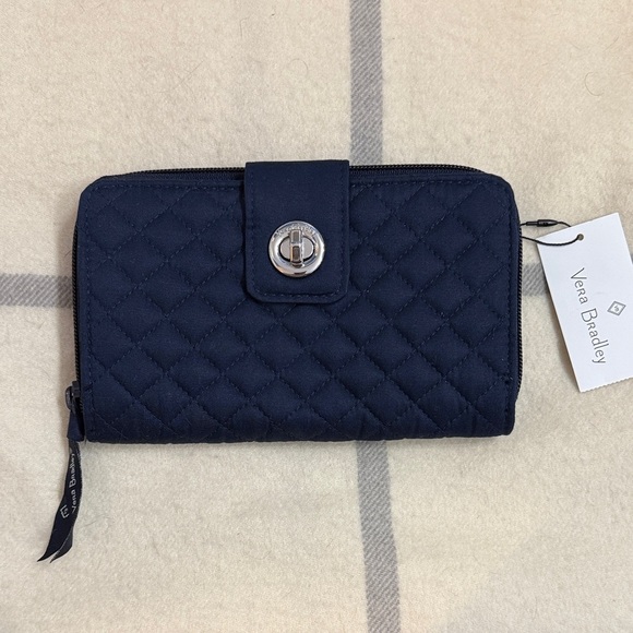 Vera Bradley Navy RFID Turnlock Quilted Wallet