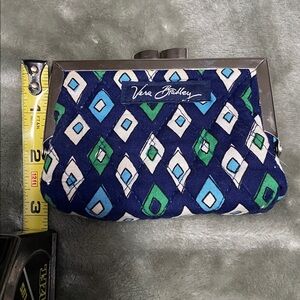 Retired Vera Bradley Mosaic Blue Kiss Lock Coin Purse. Ideal for a stylish touch. Perfect size to throw in gym bag.