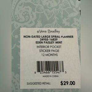 Vera Bradley Non- Dated Spiral Planner in Eden Paisley Mint