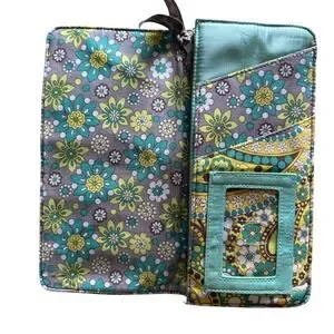 Vera Bradley Paisley Garden passport Clutch Credit Card Organizer magnetic