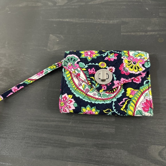 Vera Bradley Paisley Petal Turn Lock Floral Wallet Wristlet Pockets Organize EUC