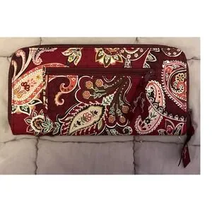 Vera Bradley Paisley Zip Around Travel Wallet Organizer Red Pink