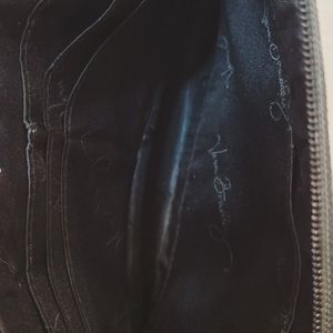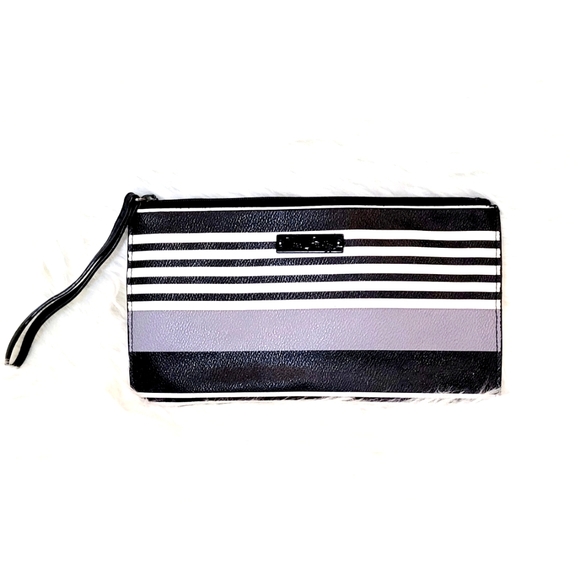 Vera Bradley Pebbled Faux Leather Wristlet Wallet Gray Black With Flaws
