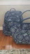 Vera Bradley backpack. Petal Splash. Blue. Multiple compartments. Adjustable back straps. One handle. No rips. Small mark on strap shown.