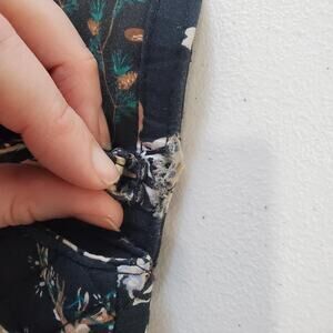 Color: Black background with multicolor woodland animals including raccoons and foxes, floral and foliage accents.