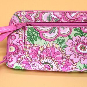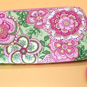 Vera Bradley Wallet. Pink floral patterned print, measures 8"x 5" folded and 8" x 9.5" open.