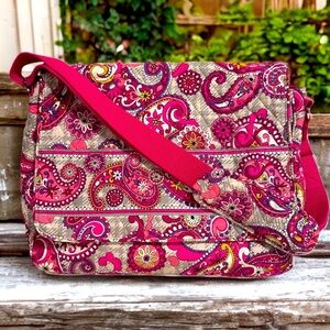 Vera Bradley Pink Large Messenger Bag in Paisley Meets Plaid Retired Print 15”