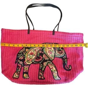 Vera Bradley Pink Paisley Elephant Patch Woven Large Tote Bag