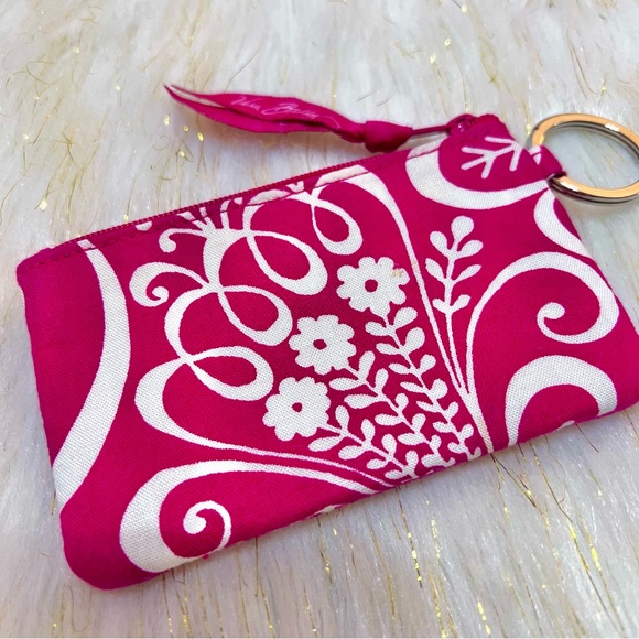 Vera Bradley Pink Paisley Floral pattern Zip small ID Wallet like new Condition