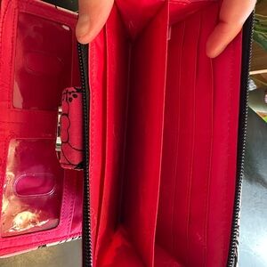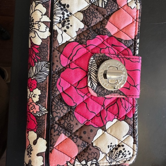 Stylish quilted wallet with vibrant floral design. Features secure clasp closure. Perfect for everyday use.