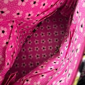 Chic Vera Bradley bowler tote with vibrant pink and green floral pattern. Matching wallet. Wallet has some loose stitches on the inside. Purse and wallet both have tags.