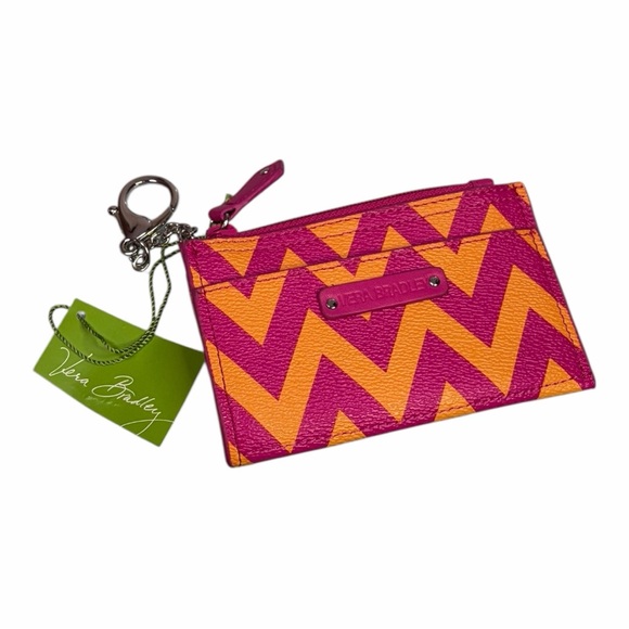 Vera Bradley Pink and Orange Ziggy Zags Chevron Card Holder Keychain Wallet