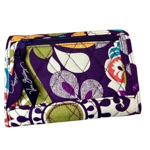 Vera Bradley Plum Crazy Euro Wallet Quilted Floral Purple Cream Bohemian
