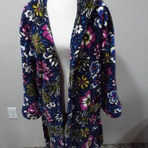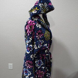 Vera Bradley Plush Blue Floral & Leopard Robe with Pockets / Hood L/XL