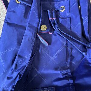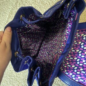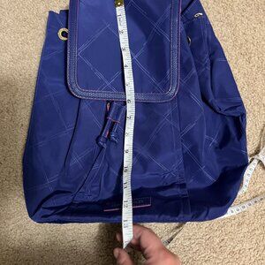 This is a lightweight nylon backpack by Vera Bradley! It has drawstring closure, two interior pockets, and one pocket on the front. It is in excellent used condition with no signs of visible wear. The (very approximate!) dimensions are 13"x13"x5".