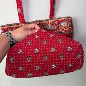 Vera Bradley Provincial Red Paisley Print Quilted Button Villager Tote Bag