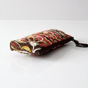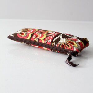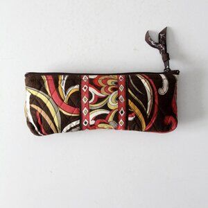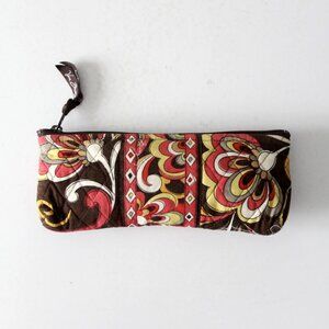 Beautiful Vera Bradley quilted cotton brush and pencil case in the retired Puccini pattern, featuring a rich mix of red, gold, and brown tones with cream accents. The slim zip-top design is perfect for holding makeup brushes, pens, pencils, or other small essentials.