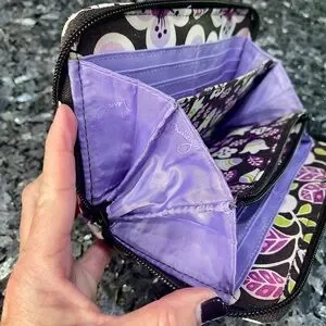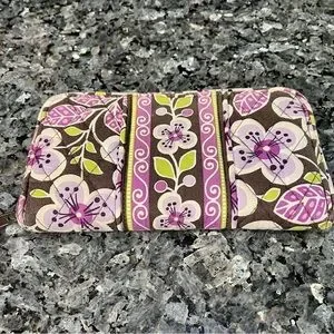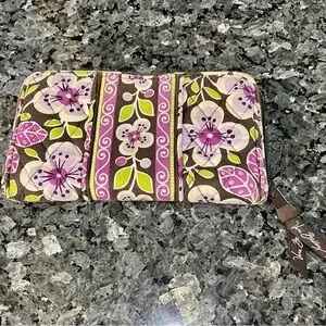 Vera Bradley Purple Floral Nightingale Zip Accordion 8 inch Wallet
