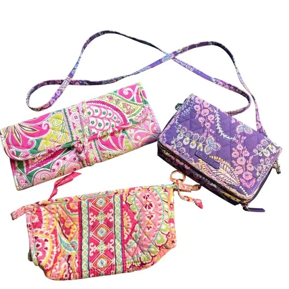 Vera Bradley Purple Paisley Crossbody Wallet Organizer Bag Lot of 3 Bundle Quilt