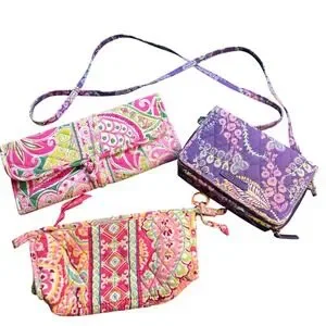 Vera Bradley, paisley, crossbody, wallet, organizer, purple, floral, quilted, travel, everyday, compact, fashionable, gift