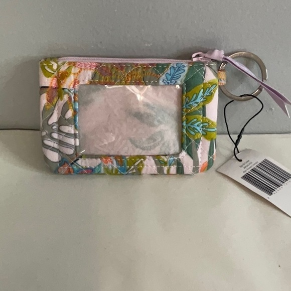 Stay organized in style with this compact Vera Bradley purple and green floral wallet ID case. Featuring a vibrant purple and green floral design, this ID case includes a keyring and a clear ID window. Perfect for keeping your essentials handy while on the go. Zip closure.