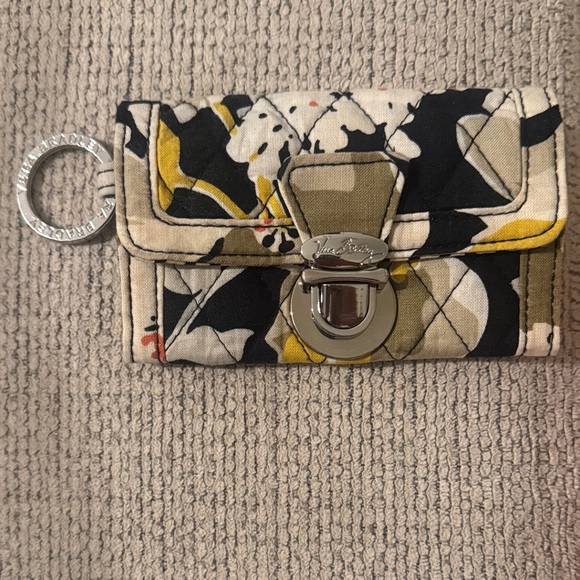 Chic Vera Bradley wallet with a bold black and yellow pattern. Features a secure clasp and key ring.