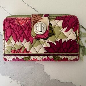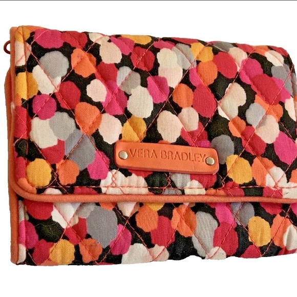 Vera Bradley Quilted Black and Pink Splatter Snap Front Tri Fold Wallet 5”x4”
