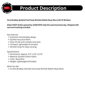 * 1x Vera Bradley Ultimate Card Case Wristlet Wallet (Navy Blue)