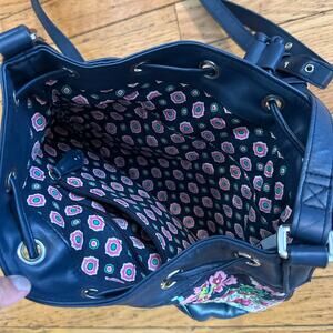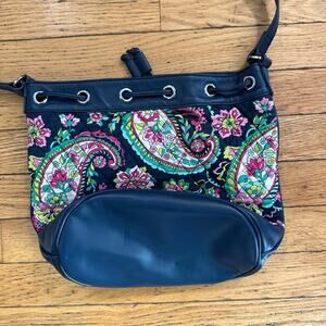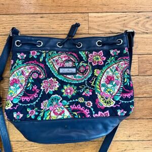 Vera Bradley Quilted Drawstring Bucket Paisley/Leather Handbag Cross Body