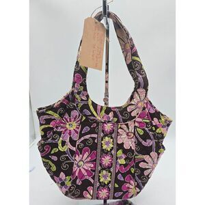 Vera Bradley Quilted Floral Multicolor Shoulder Handbag Large Size Cotton Fabric
